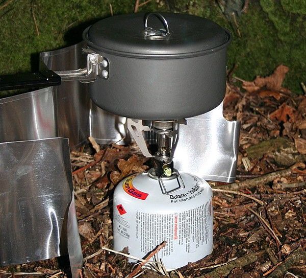 We were sent a piece of folded aluminum with this stove which acted as a windshield. It is very simple in design, but also very lightweight. It doesn’t have to be fancy to stop the wind and by simply unfolding the sheet and moulding it to the shape you want, you are done. Because the aluminum is thin, you can also sink it slightly in to the ground if soft enough, giving a little more stability.
