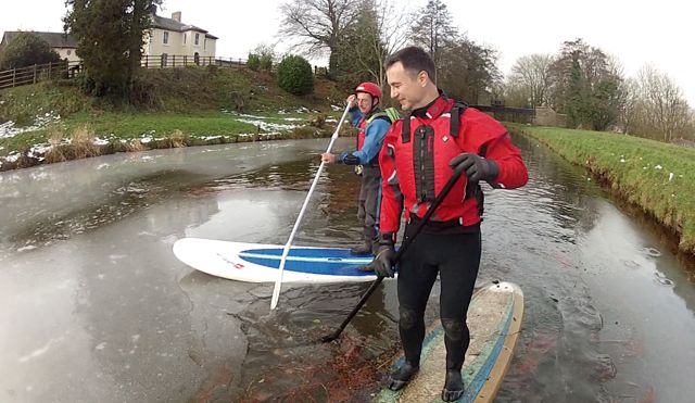 The canal is a very scenic place to paddle, with little bridges dotted about, views across the valley and beautifully painted house boats, the whole experience just feels great! We even encountered some ice in a slack area, which made a lovely cracking sound as our boards broke through it!