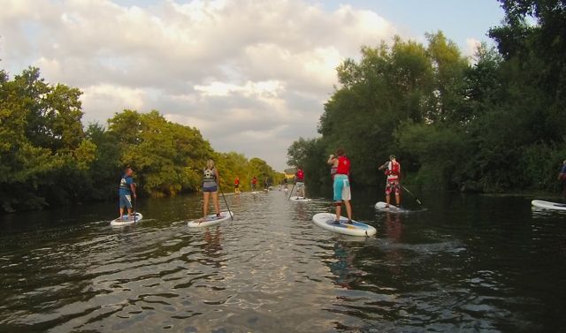 Based at Saltford, on the river Avon between Bristol and Bath, the club is open to all SUP paddlers who would like meet up with other paddlers. As SUP is a very sociable sport, already the club is growing steadily, and have started arranging regular meets on the river and a few trips too. The most recent club meet saw twenty people turn up from surrounding areas. A nice summers evening paddle was followed by a few games, including everyone lining up and running along the fronts of the line of boards, great fun and a great way to kick things off.